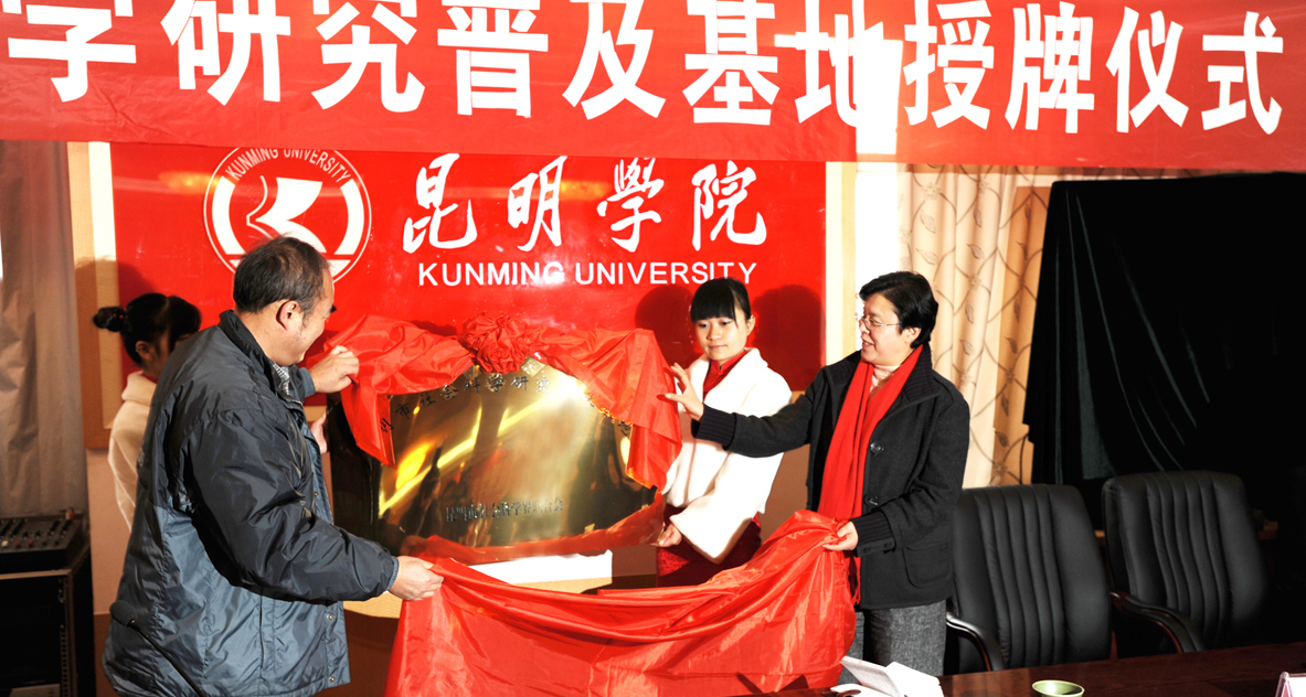 昆明市社科联龙主席和学院熊副院长为“昆明市社会科学研究普及基地”揭牌。