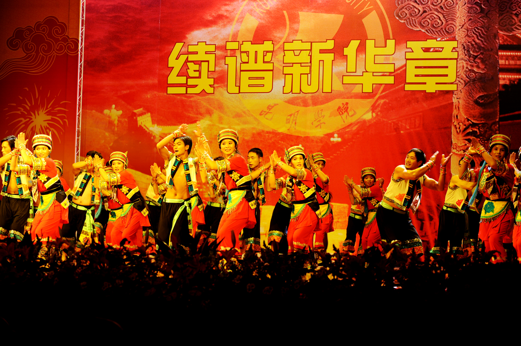 晚会由我院音乐系承办,舞蹈、器乐演奏、独唱、合唱,节目精彩纷呈,同时还有我院帮扶共建的石林县圭山镇大糯黑村村委会表演的撒尼舞蹈《丰收乐》,最后,晚会在歌伴舞《江山》中圆满结束。