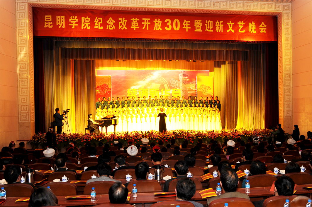 在新的一年即将到来之际,我院纪念改革开放30年暨迎新文艺晚会《续谱新华章》于12月26日在人民胜利堂隆重举行。