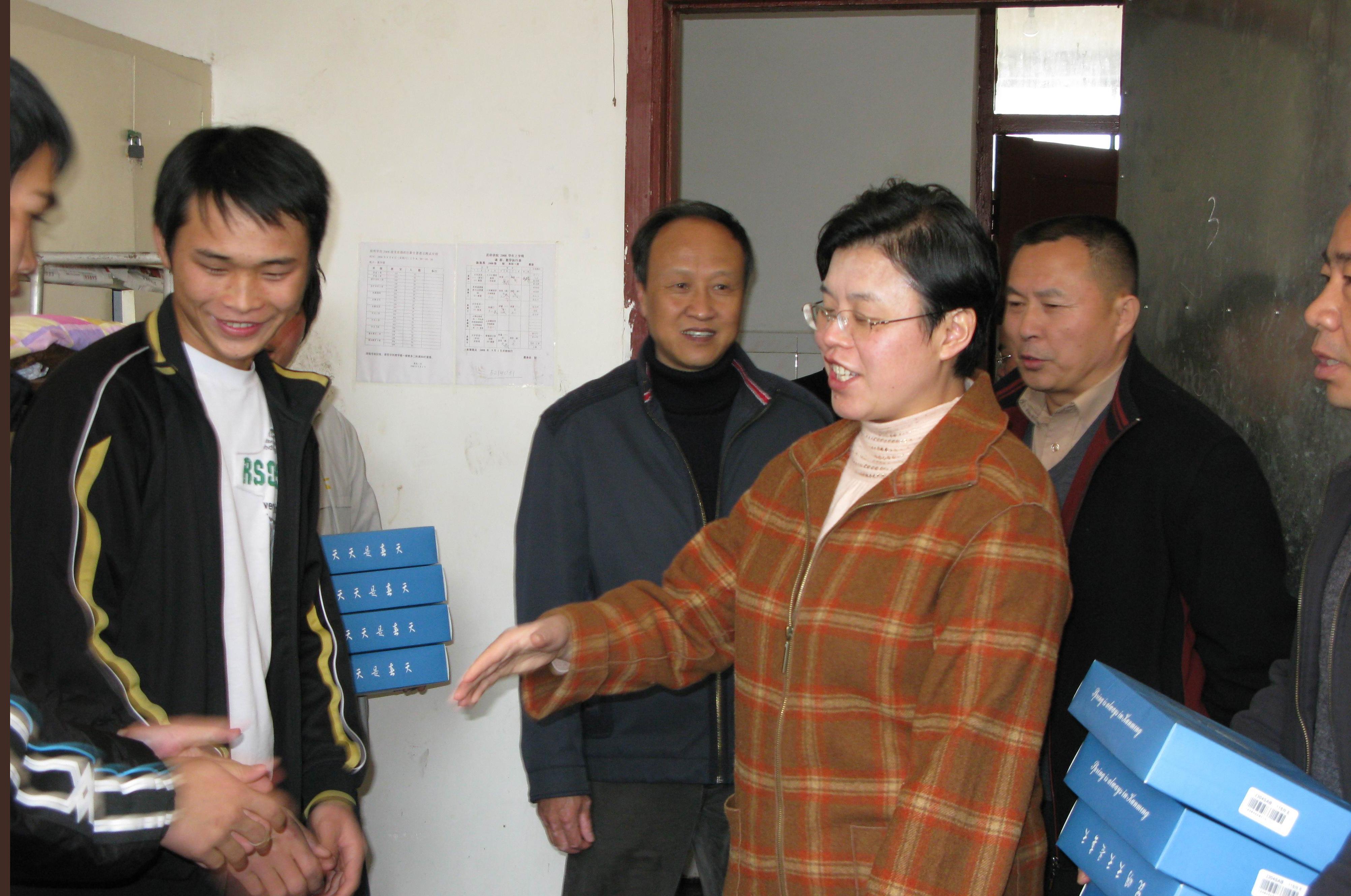 本次“情系学子送温暖”活动在我院五个校区同时开展,梁晓谷书记、陈世波院长、孙勇副书记、李媛芬副书记、陈兆雄副院长、熊晶副院长、罗明东副院长携相关职能部门的负责人分赴昆师路校区、人民西路校区、龙泉路校区、体院路校区、新迎路校区,走访学生宿舍,深入了解学生生活情况,并将冬衣送到了463名家庭经济困难学生手中。希望我院的青年学子将关爱化作学习的动力,勇敢自信,积极乐观,奋发向上。