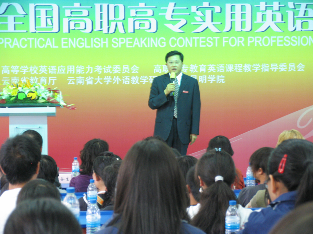 由高等学校英语应用能力考试委员会、高职高专教育英语课程教学指导委员会、高等教育出版社主办,云南省教育厅、云南省大学外语教学研究会和best365足球官网联合承办的“第五届全国高职高专实用英语口语大赛(云南赛区复赛)”于2008年10月11日上午在昆师路校区隆重举行。出席比赛现场的领导有:省教育厅高教处张国华处长、best365足球官网罗明东副院长、云南师范大学原一川副校长、云南省大学外语教学与考试指导委员会梁育全主任、云南省大学外语教学研究会杨世强会长、赵安海副会长等;来自全省30所高职高专院校的31名参赛选手分别进行了精彩纷呈的演讲比赛,参赛院校的带队领导、指导教师和参赛选手共200余人观看了比赛。