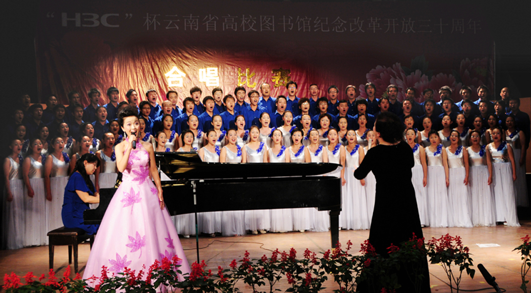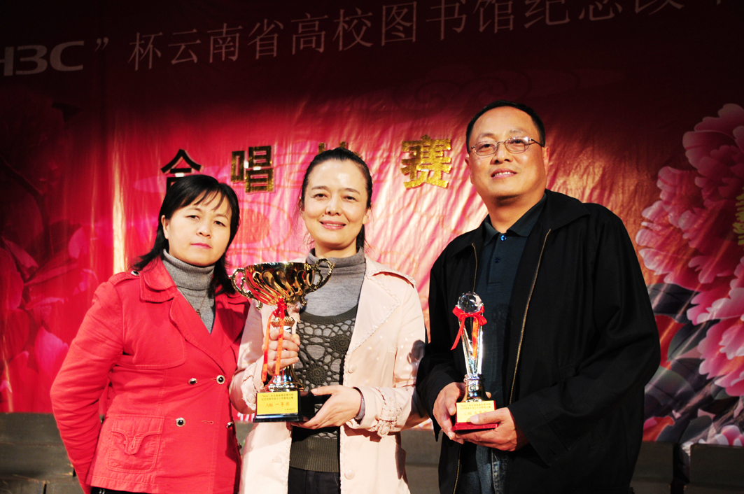 由云南省教育厅主办的“云南省高校图书馆纪念改革开放三十周年歌咏比赛”于10月24日晚在云南省艺术学院圆满结束。在学院领导的关心下,在熊副院长亲自部署下,音乐系给予了专业指导和全力支持,我院图书馆代表队在比赛中以总分第一名的成绩荣获一等奖。此次比赛,参加高校达27所,参赛人数逾千,竞争十分激烈,我院图书馆代表队,在靳丽芬教授的指挥下,团结协作,严格训练,为大赛献上了高水平合唱,得到了评委们的一致好评。另外,在个人独唱比赛中,祁跃林同志获得了二等奖的好成绩。