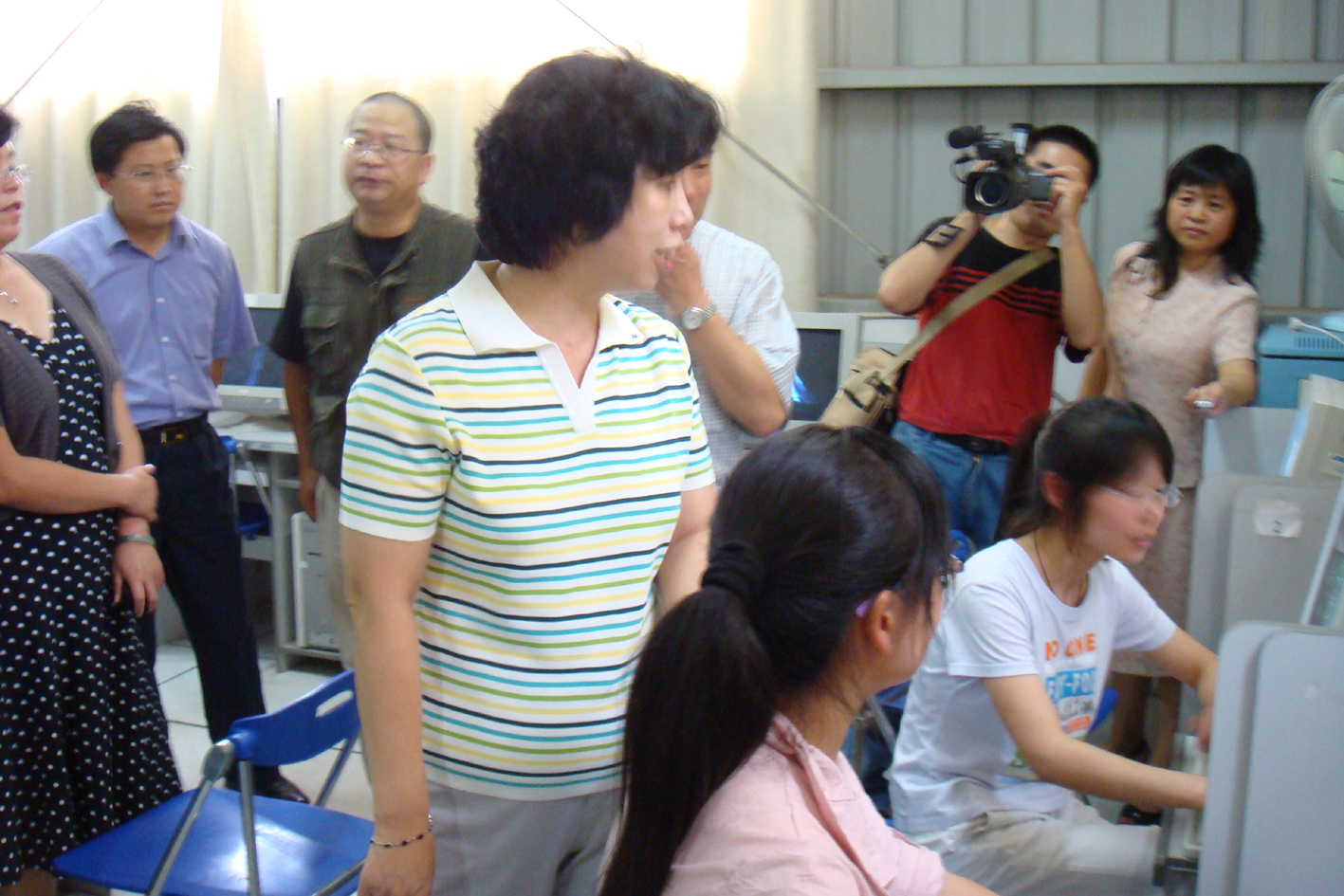 在旅游系模拟导游实验室,陈副部长听取并观看了旅游系主 任窦志萍教授对模拟导游课程设计的介绍和演示。