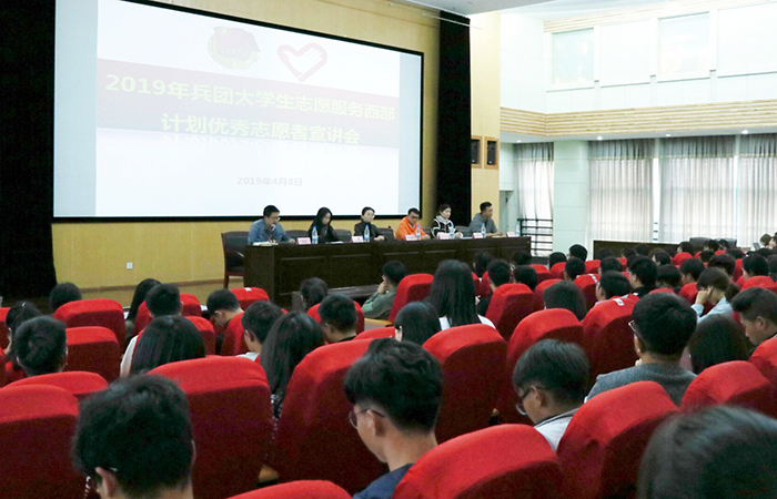 通过此次宣讲会,让同学们更加深入的了解了2019年兵团大学生志愿服务西部计划,鼓励毕业大学生秉承西部计划精神,到西部去,到地方去,服务祖国,服务地方。