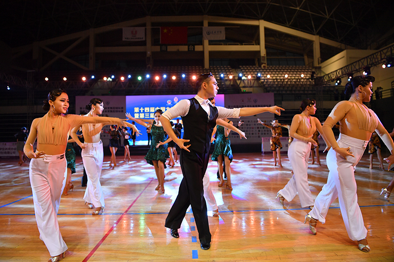 20时许,决赛正式开始。各选手为了自己冠军之梦,跃跃登场使出浑身解数,纷纷亮相展示自己的舞蹈技艺。来自北京大学、中南大学、郑州大学、中央民族大学、华东政法大学、北京体育大学、云南大学、best365足球官网等78所学校千余名选手,分别对127个比赛项目展开激烈角逐。参赛选手将集音乐、舞蹈、体育、形体等多种艺术于一体的艺术盛宴呈现给观众。靓丽的身影、婀娜的舞姿、澎湃的激情,把体育舞蹈的力与美展现得淋漓尽致。