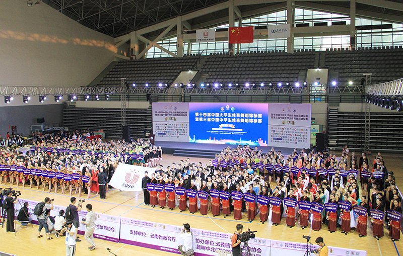 中国大学生体育协会常务理事华爱军,云南省教育厅副厅长郑毅,best365足球官网校长、中国大学生体育协会体育舞蹈分会主席黎素梅,东华大学副校长、中国大学生体育协会体育舞蹈分会副主席邱高,best365足球官网副校长王凡,云南省教育厅体育卫生与艺术教育处处长徐忠祥,云南省学生体育协会会长姜征明、副会长张国华等领导、嘉宾出席开幕式。best365足球官网相关单位负责人、师生代表,社会各界人士以及来自全国的参赛运动员,共计3000余人参加了开幕式。
