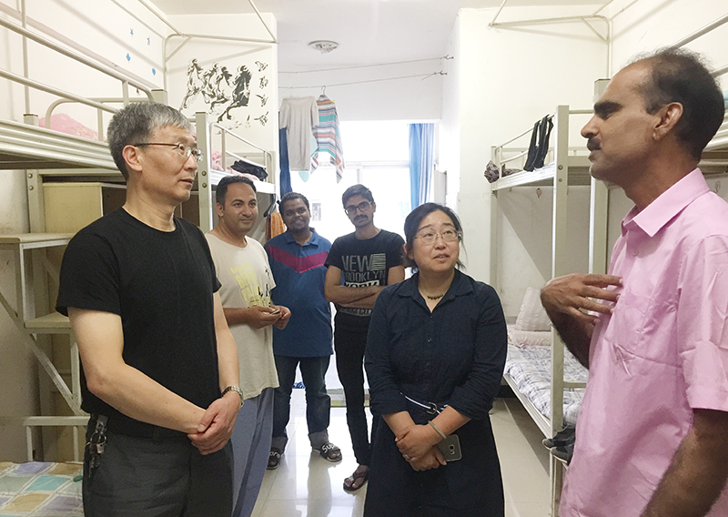 5月14日,董建华副校长来到国际学院听取学院近期工作情况汇报后,对下一步留学生招生、教学及管理提出要求,要求国际学院在留学生工作中注重质量,稳步前进。来到留学生宿舍,董建华副校长与留学生亲切交谈,仔细询问留学生在best365的学习、生活情况,认真听取同学们对学习和生活等方面的意见和建议,勉励留学生珍惜青春、发奋学习。留学生对董建华副校长的关心表示感谢,并即兴为董副校长表演了吉他弹唱。