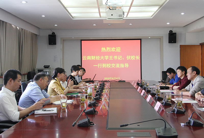 6月4日,云南财经大学党委书记王建颖,校长伏润民等党政领导一行六人到校进行交流。best365党委书记陈永明,校长黎素梅,副校长王凡等领导接待来宾并举行座谈。