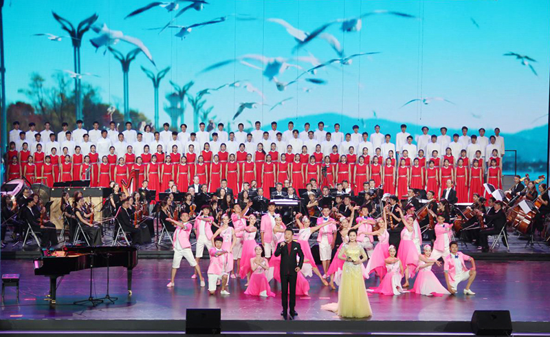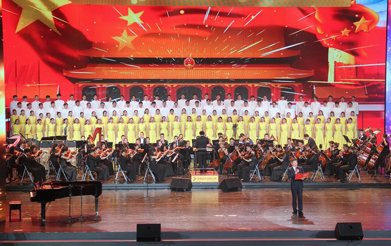 7月17日晚,第六届中国聂耳音乐(合唱)周开幕式暨“国歌唱响新时代”交响合唱音乐会在云南大剧院举行,学校音乐舞蹈学院100余师生组成的best365足球官网合唱团参加演出。