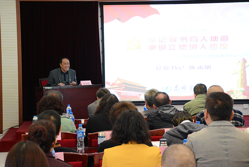 陈永明书记为参训研究生导师作《牢记教书育人使命,争做立德树人楷模》的师德师风教育专题辅导,提出要求。他强调,研究生的教育与培养,是确保学校高层次应用型人才培养质量的关键环节。新形势下,导师作为研究生培养第一责任人,要切实履行立德树人职责,承担传播知识、传播思想、传播真理的历史使命,肩负塑造灵魂、塑造生命、塑造人才的时代重任,履行思想引导、学术引导、心理引导的神圣职责。