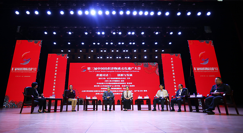 下午举行的非遗对话环节,由国家非物质文化遗产展览展示研究中心执行主任孙冬宁和辽宁省纺织服装协会会长王翀主持。各界专家学者分别以“传承与设计”、“创新与发展”为主题开展对话,介绍和分享、碰撞和交流,不断学习、创新,共同推动非物质文化遗产的保护和发掘工作,并创造出更具生命力的艺术作品。