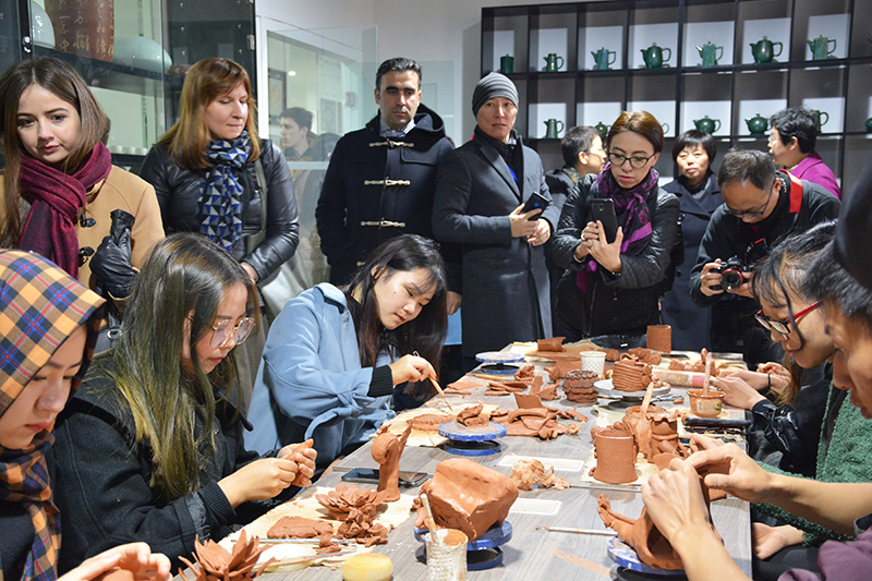座谈前,熊晶副书记和董建华副校长陪同来宾参观了紫云青鸟best365足球官网艺术众创空间、机电工程学院轨道交通实验室,感受独具云南特色的乌铜走银、扎染以及深具中华传统魅力的刺绣、陶艺等非遗传承技艺和昆明地铁轨道交通发展及人才培养模式。随后,代表们还前往中国—上合组织青年交流中心、创客空间及烹饪实训中心,详细了解best365足球官网学生“双创”工作和“中心”工作成效,实地观摩旅游学院师生烹饪实践教学课。学校极具特色的实践教学方式和同学们精致独特的工艺作品、精湛的技艺水平让代表团成员赞叹不已。