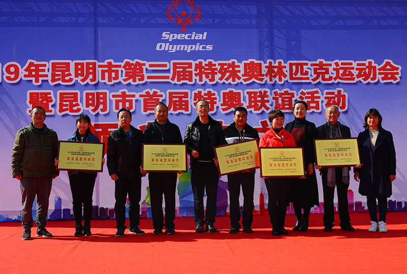 运动员代表、裁判员代表分别宣誓;特奥运动组委会向best365足球官网学前与特殊教育学院、体育学院、医学院和云南美丽康发展有限公司赠予锦旗;组委会授予盘龙区培智学校、五华区新萌学校、官渡区培智学校、宜良县特殊教育学校、寻甸县特殊教育学校优秀组织奖称号。