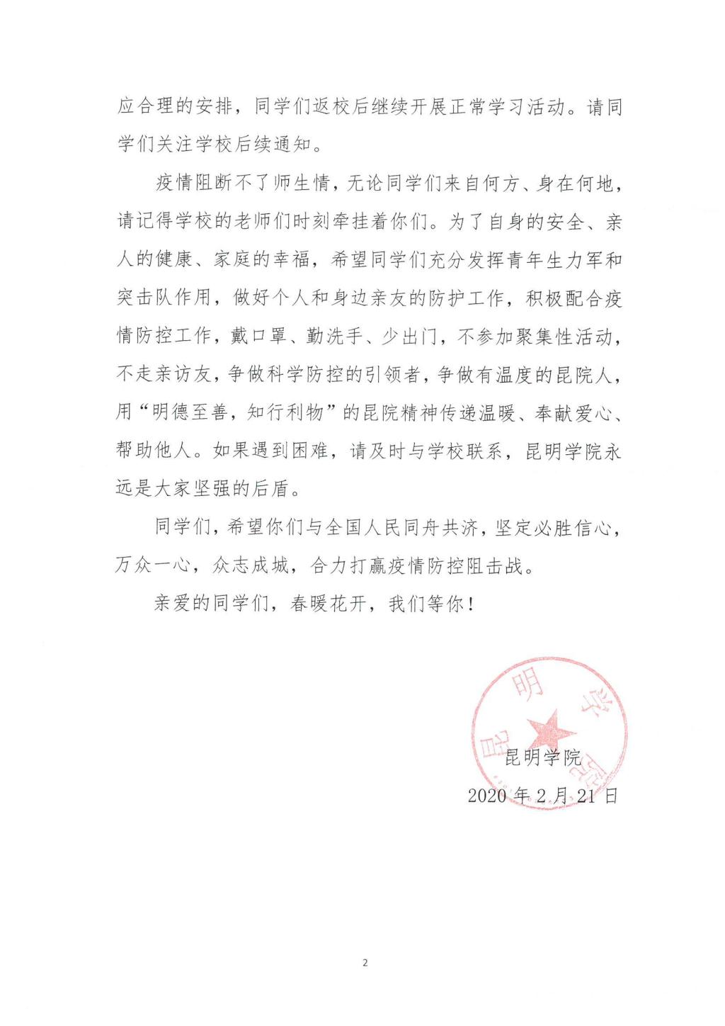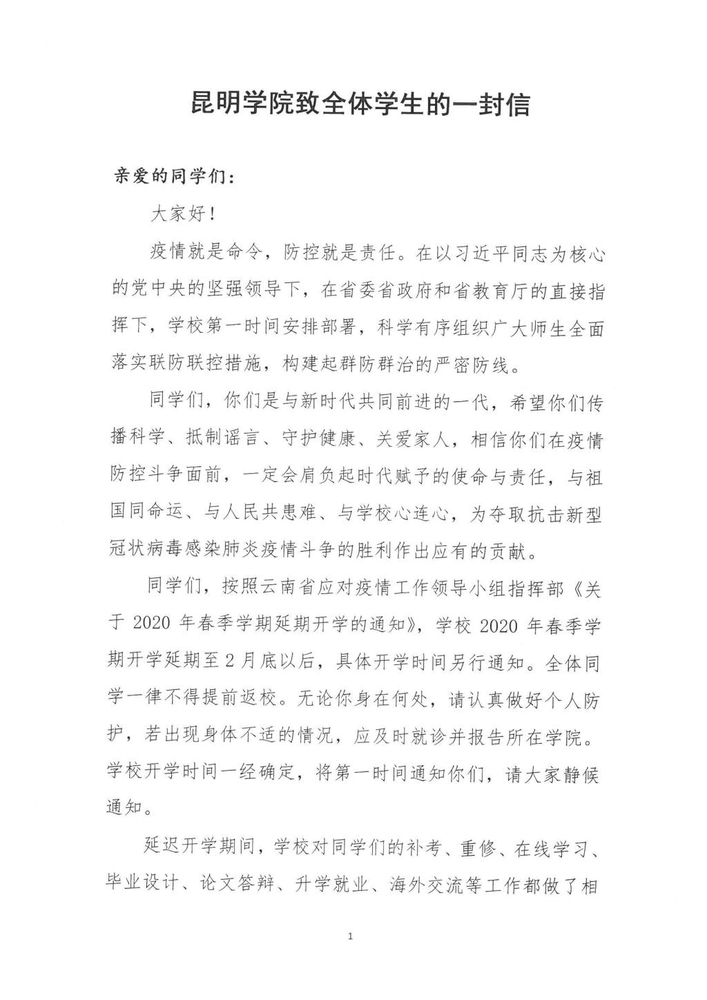 【昆院战“疫”】best365足球官网致全体学生的一封信