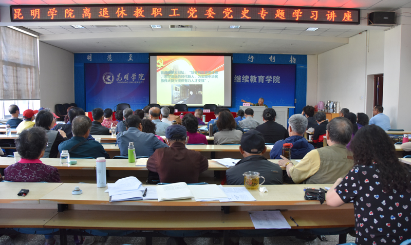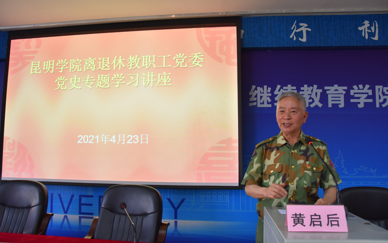 423日,离退休教职工党委邀请云南省关工委宣讲团专家、昆明市关工委宣讲团常务副团长、学校“五老”宣讲团成员黄启后同志在昆师路校区5402教室作“学党史、悟思想、办实事、开新局”专题讲座。离退休各党支部书记、委员、党员代表和离退休工作处全体教职工参与聆听,离退休教职工党委副书记宋敏敏主持讲座。