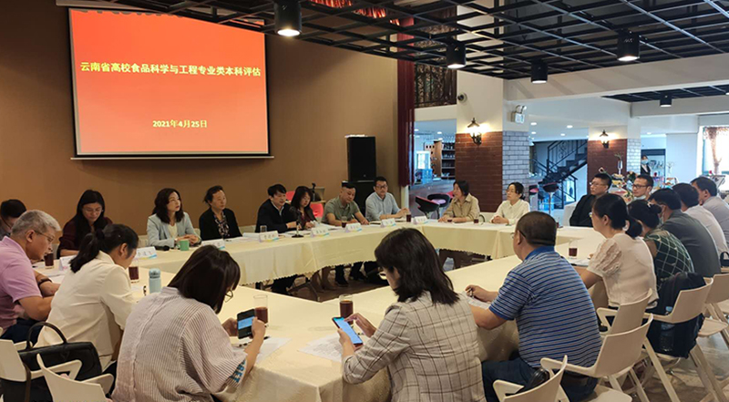 4月25日,云南省2021年高校本科专业综合评价食品科学与工程类专业点评价会议在学校旅游学院酒水实验室召开。食品科学与工程类专业类组长、昆明理工大学农业与食品学院常务副院长(正处级)曹建新教授,副组长、云南农业大学食品科学技术学院党委书记龚加顺教授,best365足球官网旅游学院院长田芙蓉教授、烹饪与营养教研室王京法主任及全省近30名食品科学与工程类专业负责人参加会议。