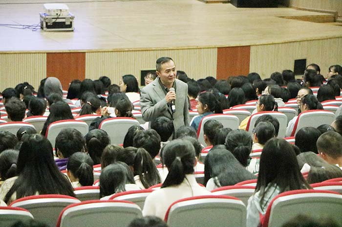 11月9日晚19:00,城建学院、农学院、体育学院、数学系,社会管理学院联合邀请云南师范大学赵建新教授在学生会堂为大家开展"走进大学,走进春天——大学生心理调整"专题心理健康教育讲座。城建等五个院系的1200余名2018级新生聆听了本场讲座,城建学院学党总支副书记侯青妮老师担任主持人。
