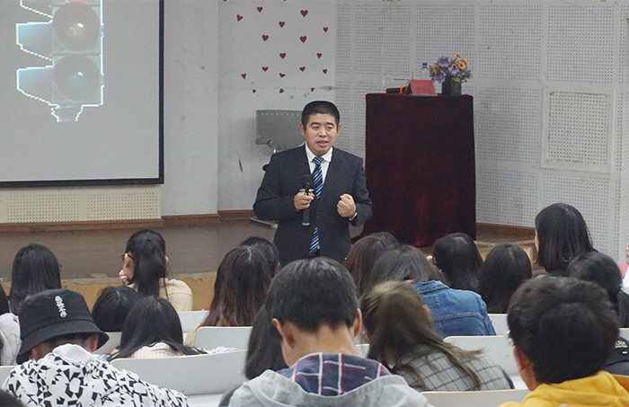 李春光老师从大学生的角度分析法律问题,从大学的“学会自我保护”、“学会合作”、“学会发展自己”三大要务分别解读了法律在大学生活中的重要性。围绕大学生学法的必要性、基本内容以及怎样学法三个方面,普及常用法律知识。他结合高校真实案例对当前大学生权益受侵害案件、事件的特点和常见的大学生违法犯罪等现象进行分析,并让大家从中汲取深刻的教训。同时也教育学生提高自己的法律意识和自我保护能力,学会运用法律武器维护自身的权益,保护人身安全,做到知法守法。李老师激励在场学生,应常怀对法律的敬畏之心,深化对法治理念、法治实践的理解,坚定地以法治素质铺就人生道路基石的理想和信念,脚踏实地的走好人生的每一步。