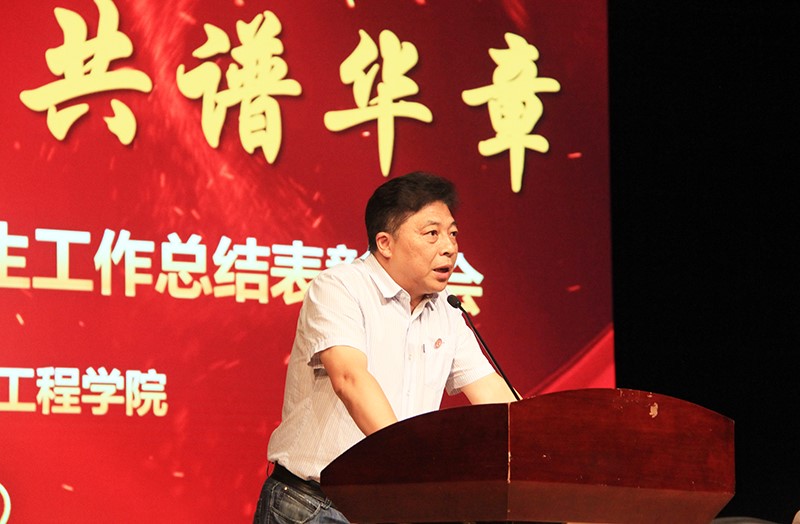 沈凡副校长代表学院党政班子作重要讲话。他对受到表彰的先进个人、先进集体表示祝贺,对在各自岗位上辛勤劳动、努力付出,为学生成长成才和学院发展建设做出卓越贡献和显著成绩的各位班主任、辅导员、任课教师们表示感谢。他高度肯定了建筑工程学院2020-2021学年中在教学科研、学生工作方面取得的各项成绩,同时也强调了当前学校的重点工作和主要任务、学院面临的困难与挑战,希望全体师生以这次表彰大会为契机,增强责任感和使命感,不忘立德树人初心,牢记教书育人使命,聚集力量、攥指成拳,以更加饱满的激情和更火热的朝气,继续弘扬同舟共济、脚踏实地、奋发有为的精神,发扬工科人低调务实不张扬、埋头苦干不漂浮的实干品质,积极促进学校“十四五”开好局,努力推动实现学校“全国知名、特色鲜明的综合性应用型高水平地方大学”的奋斗目标,“扛得住压力、展得出朝气、守得住初心、担得了使命”,以优异的立德树人业绩,奋力开创建筑工程学院的新未来。