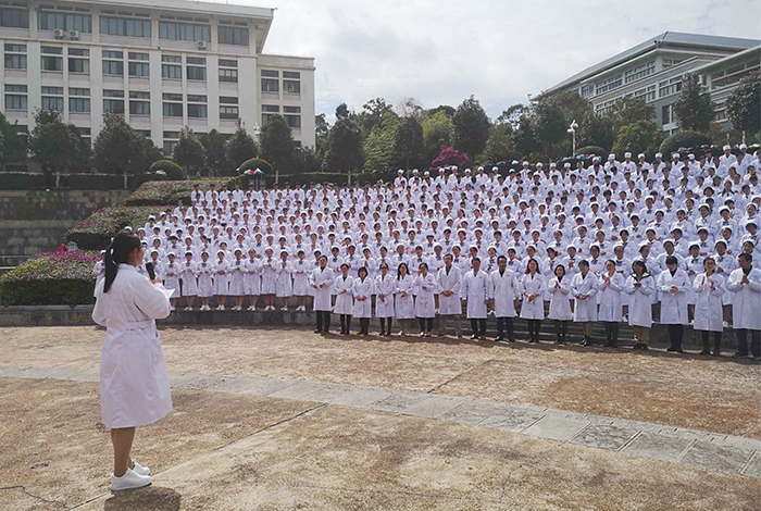 10月29日,医学院在听心湖广场举行了2018级医学生誓言宣誓仪式。医学院党总支书记王建华、院长余珊、党总支副书记张培宏、副院长陶剑、医学院全体辅导员、2018级新生班班主任及2018级全体新同学参加了宣誓仪式。