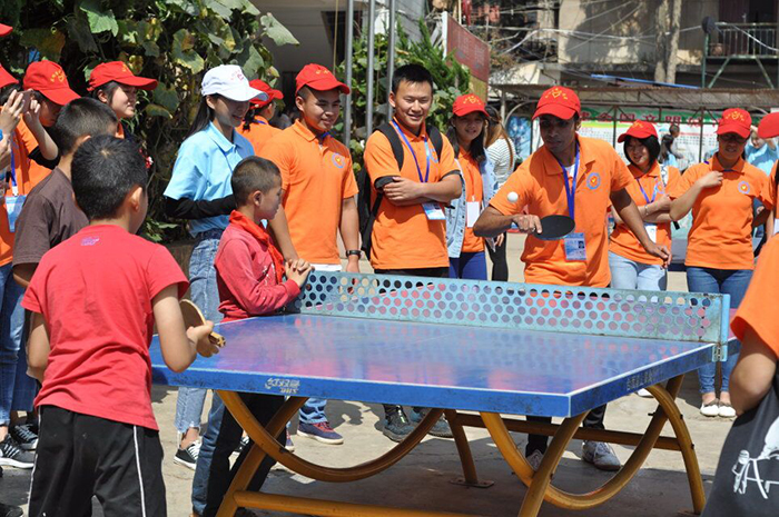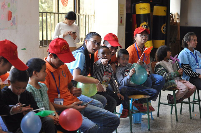 志愿者们在领取志愿者衣物及物资后一起乘坐公交前往德馨学校。学校老师介绍了相关事宜后,志愿者们分为四组与小朋友们在操场做游戏,其中,游戏包括乒乓球、跳绳、丢手绢、摸瞎子等,操场上,志愿者们与小朋友们相处十分融洽。操场游戏活动过后,志愿者们与小朋友们一起进入学校多功能教室并入座,准备展开接下来的活动。志愿者为小朋友们表演了事先悉心准备的打拳、唱歌、跳舞等节目,小朋友们也为我们带来了欢乐的海草舞,大家的脸上都洋溢着快乐的笑容,整个教室充满着幸福的气息。随后,在教室里又进行了萝卜蹲等团体游戏,在一片欢声笑语中结束了本次志愿服务活动,活动的最后,志愿者们还让小朋友们排队领取了事先为他们准备好的学习用品和趣味图书。离开学校之前,志愿者们与小朋友们合影留念,本次活动圆满结束。