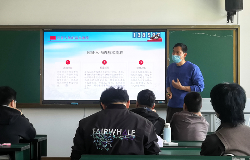 为营造“参军报国,无上光荣”的氛围,学院在西华路校区毕业生宿舍前悬挂了征兵宣传横幅,向同学们发放了征兵宣传手册。辅导员邹云光老师现场进行了相关政策法规、条件标准、应征报名等方面的咨询解答,与同学们进行了互动交流。