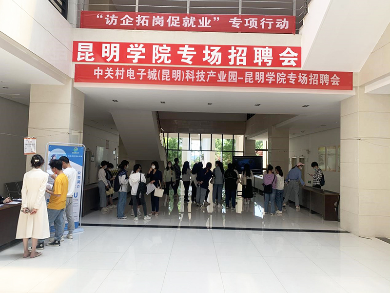 本次招聘会是2022年4月20日学校党委金幼和书记调研滇中新区管委会的延续,由滇中新区中关村电子产业园牵头,共组织中关村电子城(昆明)科技产业园开发建设有限公司、云南米利天然香料有限公司、云南瑞栢泰生物制品有限公司等三个入园企业到校招聘,共提供岗位20余个,先后有100余名毕业生到场咨询和应聘。
