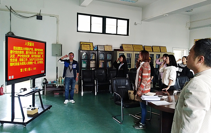 会上,各支部书记向本支部过政治生日的党员同志赠送了的政治生日贺卡并送上政治生日祝福。最后,在教工支部宣传委员王进老师的领誓下,参会的全体党员同志重温了入党誓词。