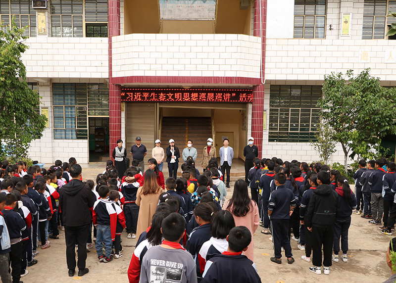 5月18日,在云南省社科普及宣传周期间,滇池流域生态文化博物馆教师来到大滇池流域牛栏江支流普沙河畔的嵩明县嵩阳街道,开展“习近平生态文明思想巡展巡讲活动”。省社科联科普部杨远梅主任,嵩明县嵩阳街道办副主任黄建伟,省社科联机关第五党支部全体党员干部、博物馆干部教师和山脚小学师生400余人参加活动,此次活动共服务群众500余人。
