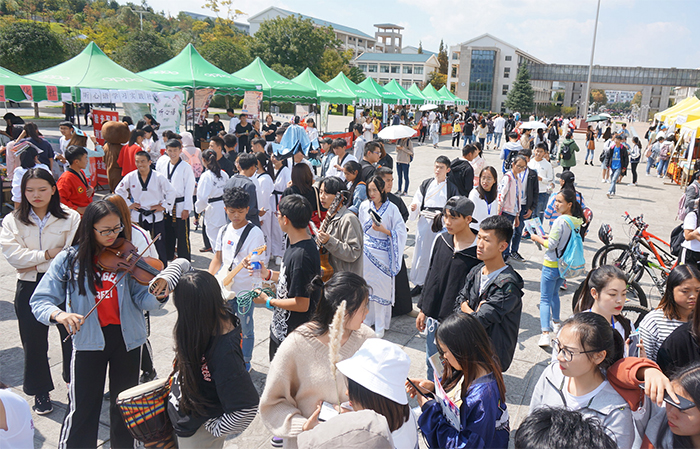 10月19日,为期三日的第九届“昆院有你,社团等你”社团文化博览会开幕式暨社团招新在聂耳广场圆满落幕。活动期间异彩纷呈,激情不断,社团纳新满满。best365足球官网党委统战部部长机关党总支书记蔡华仙、党委宣传部副部长李思诚,学生处副处长吴向东,党委组织部干部科科长尤新明,校团委副书记郎易老师出席了开幕式,同时各在昆高校学生代表及best365十八家院系师生代表参加了本次活动。