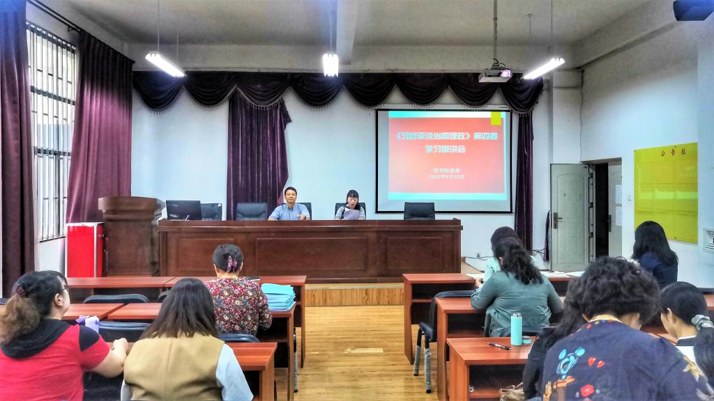 同日,学院利用周五政治学习时间组织学习宣讲会,向全体教职工传达学校关于学习《习近平谈治国理政》第四卷的通知要求,带领教职工深刻领悟全书的精神脉络、思想体系和核心要义,共同学习了《在加快推进教育现代化的新征程中培养担当民族复兴大任的时代新人》一文。