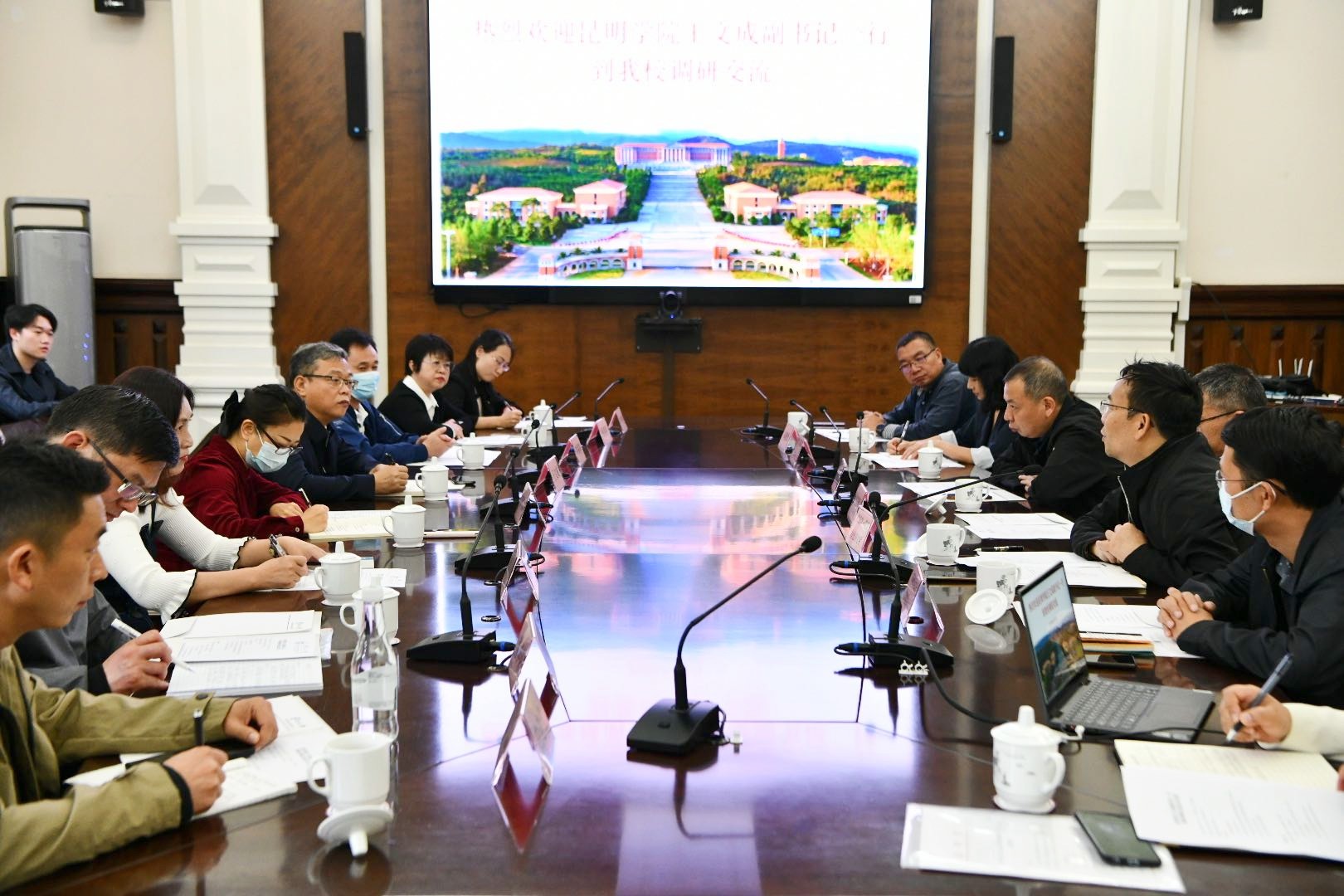 10月7日,学校党委副书记王文成带领相关部门、学院负责人和专业技术人员一行16人前往云南大学、云南师范大学学习校史馆建设经验。云南大学副校长廖炼忠、档案馆馆长李怀宇,云南师范大学副校长甘建候、档案馆馆长徐波,以及两校相关职能部门负责人热情接待,按照议程安排举行座谈交流、参观学习。