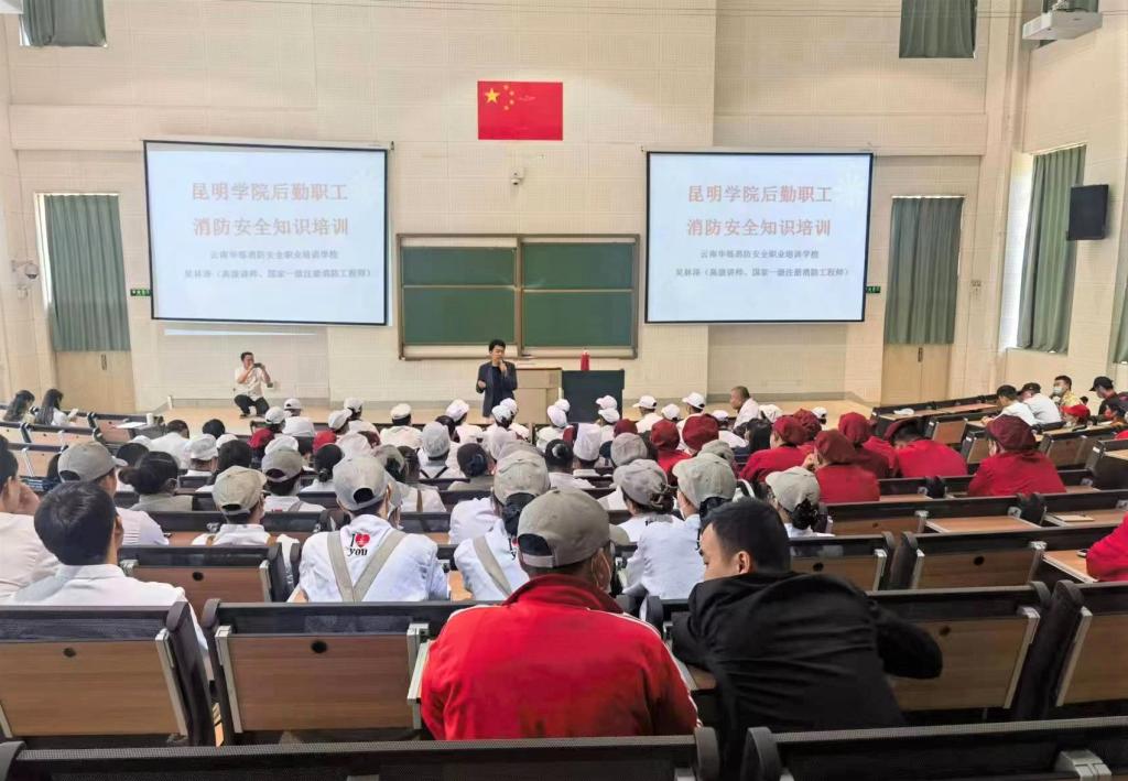 本次培训邀请云南华硕消防培训学校吴泽林老师主讲,吴泽林老师对食堂员工讲解了食堂消防安全的重要性和开展培训演练的必要性,重点讲授了食堂用火、用电、用气的安全操作规程,以及发生火灾时的处置方法。