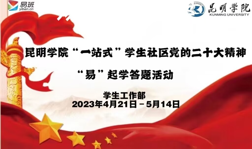 为深入学习贯彻习近平新时代中国特色社会主义思想和党的二十大精神,激发青年学生踊跃互学,形成学生社区学习热潮和氛围, 4月21日至5月14日,学校举办“一站式”学生社区党的二十大精神“易”起学答题活动。