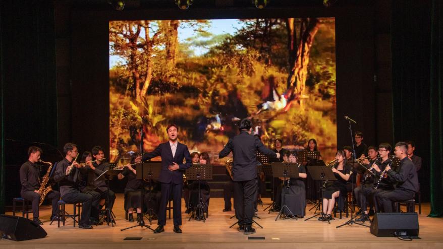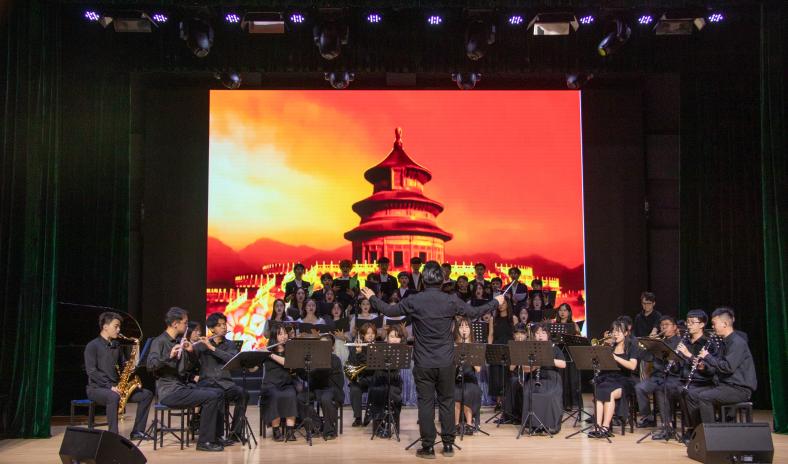 最后,学生管乐团、声乐团共同为观众带来了创造辉煌不可阻挡的歌曲《走向复兴》,将演出推向高潮。