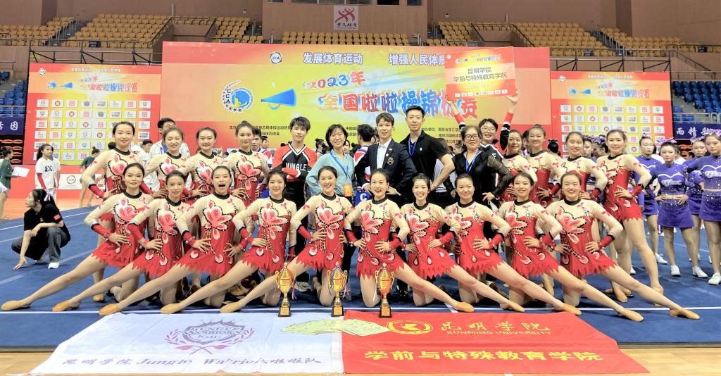 best365学前与特殊教育学院Jungle Warriors啦啦操队在此次大赛中勇夺佳绩,获得2金1银。在小集体组花球自选动作项目(俱乐部青年乙组)、集体自由舞蹈自选动作项目(公开青年乙组)中获得2项冠军,在小集体组花球自选动作项目(公开青年乙组)中获得亚军,在大集体组花球自选动作项目(公开青年乙组)中获得第四名。参赛过程中,Jungle Warriors啦啦操队员们充分展现了昆院学子斗志昂扬、勇于拼搏的竞技精神和团队精神,彰显了新时代大学生积极向上的良好风貌。