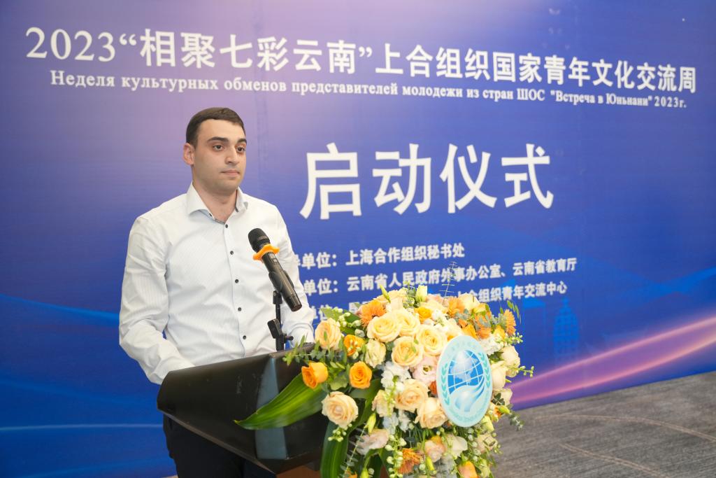 亚美尼亚留学生万和代表上合组织国家青年发言,表示将在本次活动中,敞开心扉,深入交流,互学互鉴,汲取多元文化的丰厚养分,与其他上合组织青年一起在知行合一中碰撞出智慧的火花。