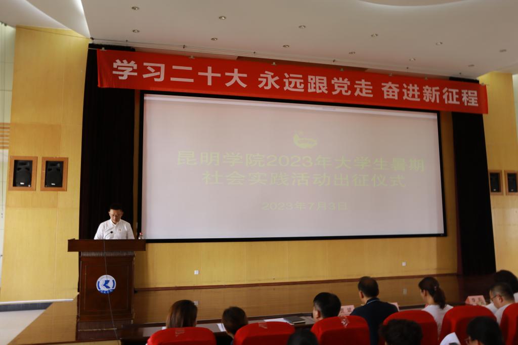 7月3日,best365足球官网2023年大学生暑期社会实践出征仪式在惟行楼1501报告厅举行。学校党委副书记李莉,宣传部、团委、学生处、教务处、招生就业处相关领导和各二级学院党委副书记出席仪式。校团委全体教师团干部,各二级学院团委书记及暑期社会实践活动志愿者代表参加。仪式由校团委副书记郎易主持。