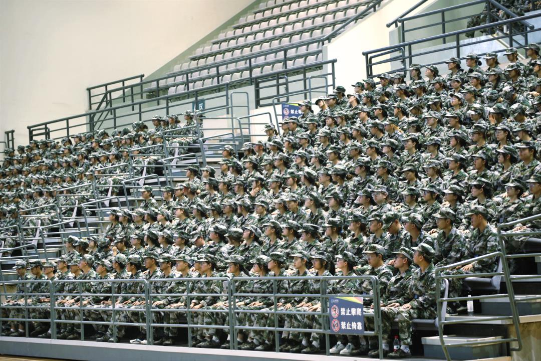 7月12日上午,学校2022级新生军训素质讲座在体育馆综合馆举行。