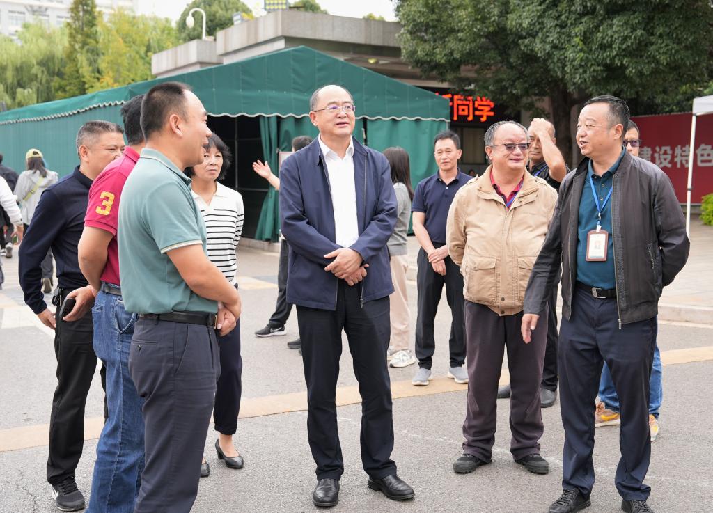 在学校南门、博雅楼新生接待处,金幼和一行查看了交通引导、新生入校接待、迎新宣传、各学院临时服务点等工作开展情况,并向现场工作人员和志愿者表示慰问。