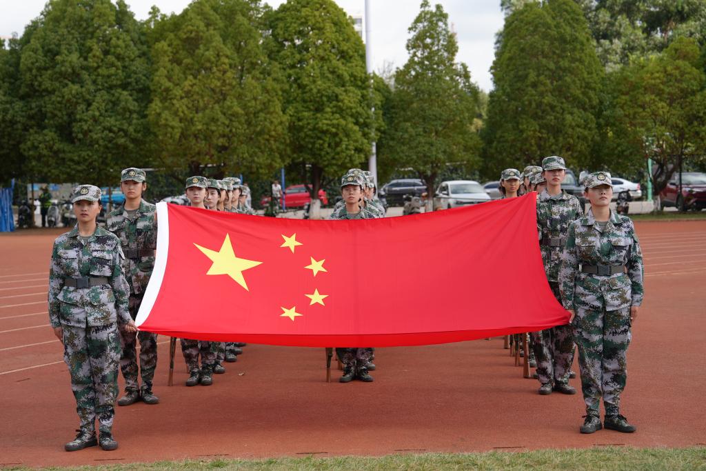 9月22日上午,2023级学生军训汇报表演暨总结表彰大会在洋浦校区田径场举行。