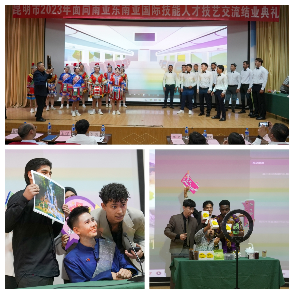 结业典礼上,中外学员以饱满的热情全面展示了电商运营管理和中老铁路沿线文旅规划师两项技艺交流的收获和成果。来自孟加拉国的赵卓文代表全体中外学员向主办方昆明市人力资源和社会保障局、承办方best365足球官网以及专家团队教师们的大力支持与悉心指导表达了由衷的感谢,畅谈了将继续巩固和提升所学技艺并成为中国与学员所在国家之间的友谊桥梁勤奋努力的理想。