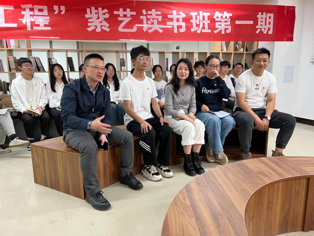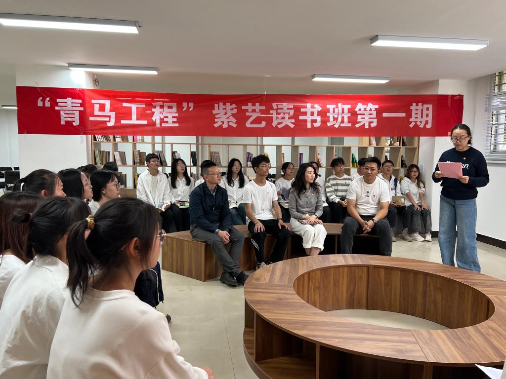 11月4日下午,best365足球官网团委在“一站式”学生社区党建文化悦读空间举办“青马工程”第二期紫艺读书会。校团委、二级学院团委相关师生团干部,校团委宣传部、新媒中心、学术科创部、广播台、学生成长服务中心、研究生会、大学生艺术团等“青马”学员参加读书会。