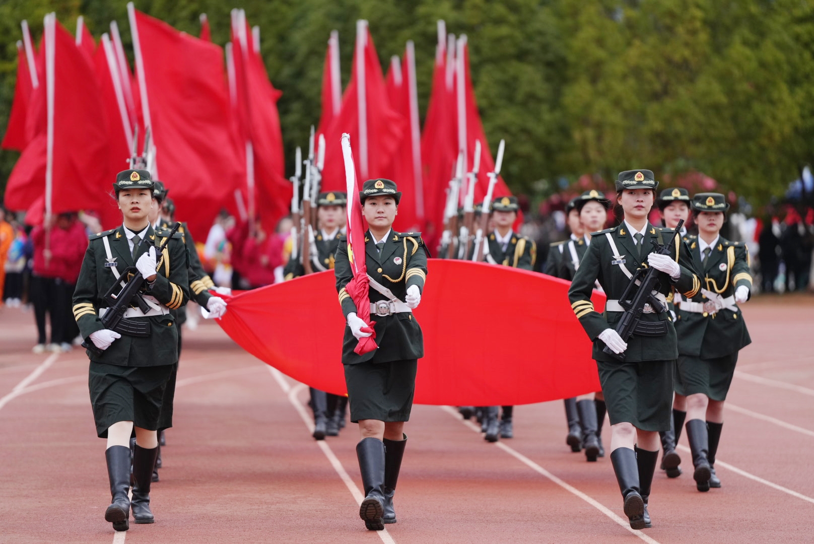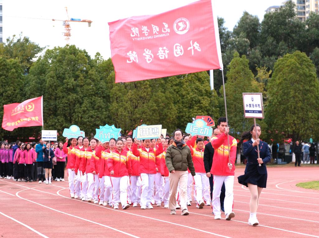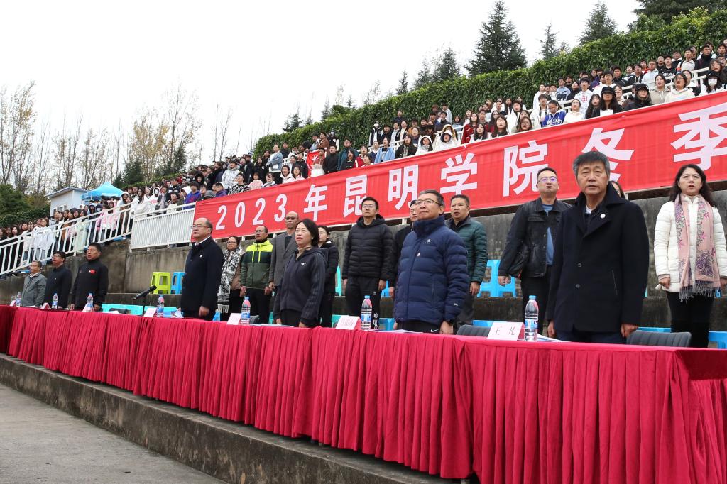丁文丽校长致辞表示,近年来学校体育教育事业不断发展、进步,大学体育课程顺应完全学分制改革,全面实施“俱乐部制”教学模式,“阳光体育活动”课内外一体化协同推进;学校大力倡导全民健身,以全民健身促进全面健康取得新成效,学生体质健康测试达标率稳中有升,持续向好;丰富多彩的校园体育赛事,激发了广大师生对体育运动的热情,体育文化成为校园文化建设一道靓丽的风景。运动会是全校的体育盛事,更是对学校体育工作水平的一次集中检阅,希望广大师生恪守“公开、公平、公正”的竞赛规则,发扬“更高、更快、更强”的体育精神,赛出风格、赛出水平、赛出友谊、赛出团结,展现我们昆院人的精神风貌和道德风尚,并将体育运动中展现出来的自强不息、百折不挠、永不放弃、敢于担当、勇于拼搏、坚持到底的坚定信念和精神转化为推动学校高质量内涵式发展的强大动力。