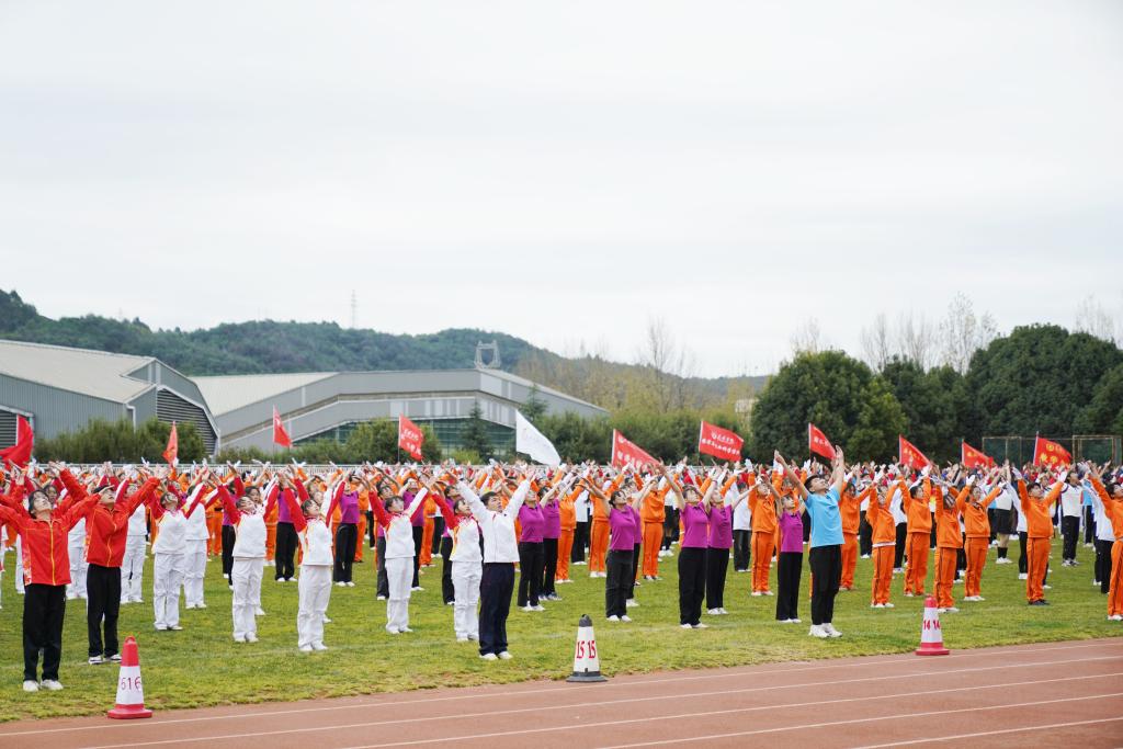 开幕式现场,各二级学院进行了大学生广播体操比赛,体育学院带来花式跳绳表演。
