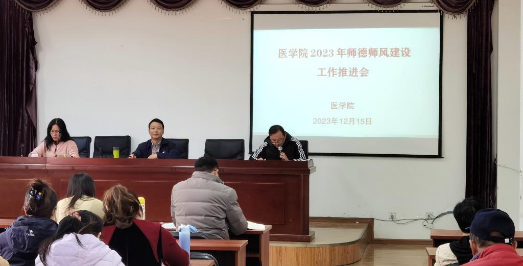 12月15日下午,医学院党委召开师德师风建设工作推进会议。学院党委书记张培宏领学了习近平总书记关于师德师风建设的重要论述,传达学习了全省教育系统师德师风建设工作推进视频会议和best365足球官网2023年师德师风建设工作推进会精神。医学院及校医院全体教职工参加会议。