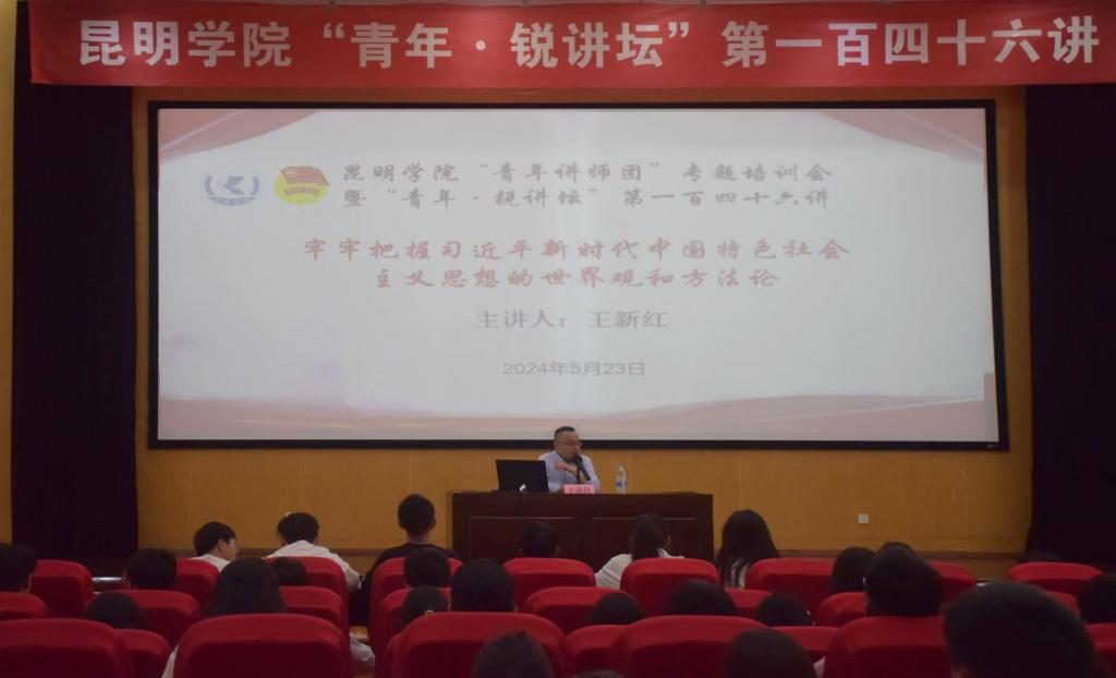 为深入学习贯彻习近平新时代中国特色社会主义思想,推动学校“青年讲师团”深入学习贯彻党的二十大精神,确保宣讲取得实效,5月23日,校团委举办“青年讲师团”专题培训暨“青年·锐讲坛”第一百四十六讲《牢牢把握习近平新时代中国特色社会主义思想的世界观和方法论》,主讲人为云南大学马克思主义学院教授、博士后合作导师王新红。