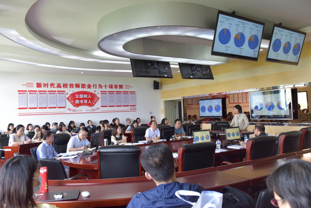 专题讲座中,丁文丽以近三年来学校、学院绩效数据横向纵向对比分析为切入点,全面分析了经济管理学院目前的发展基础、面临的问题和原因,并针对下一步如何实现学院事业高质量发展,提出了思路和措施:一是“调总量”,保持合理人员规模,提升在编教师博士比率,引进学科团队带头人;二是“优结构”,从教学型转向教学研究型,坚持做优本科教育,做大研究生教育,做强科研;三是“强特色”,在自贸学院现有的机构和基础上,进一步抢占应用型特色办学制高点、产教融合制高点、科技研发制高点;四是“建机制”,进一步优化学院内部管理体制机制,建设科研团队,深化人财物绩效评价改革,最大限度调动和提升教职工的工作积极性。丁文丽强调,学院全体教师要上下同心、共同努力、补齐短板,在高质量发展的道路上迈出更加坚实的步伐。