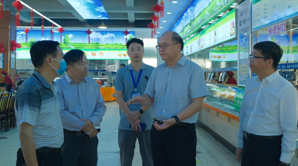 金幼和一行还实地查看了学生食堂、宿舍区域,就后勤保障服务、食品安全、学生生活环境等问题进行检查指导,并对保障学生安全报到、安心入住、热心服务等方面提出了进一步要求。要切实抓好迎新安全保障工作,盯紧食品安全、饮用水安全、道路安全和环境安全等重点环节,筑牢校园安全防线,保障学生入学新生活安全。要秉持“以学生为中心”的理念,要提高服务意识,不断优化服务流程,提升服务质量,为学生提供安全、温馨的学习生活环境,让家长放心、学生舒心。