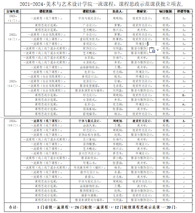2021年-2024年美术与艺术设计学院一流课程、课程思政示范课立项名单